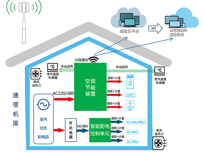 »ùÕ¾½ÚÄܽâ¾ö¼Æ»®°üÀ¨»ú·¿¿Õµ÷ÀíÄܺͻùÕ¾×°±¸½ÚÄÜ¡£»ú·¿¿Õµ÷ÀíÄÜʵÏÖ»ú·¿ÄÚ²¿¿Õе÷зçµÄÖÇÄÜÁª¶¯£¬Ê¹ÓûùÕ¾»ú·¿ÊÒÄÚ¡¢ÍâµÄÈȽ»Á÷£¬×î´óÏÞ¶ÈïÔ̿յ÷ÔËÐÐʱ¼ä£¬ÊµÏÖ½ÚÄÜ£»»ùÕ¾×°±¸½ÚÄÜʵÏÖ¶Ô5G/4G/2GµÈ¶à¸öÍøÂçµÄ»ùÕ¾ÌìÏß¾ÙÐзÖʱ¡¢·Ö·ͨ¶Ï¹¦Ð§£¬ÏÐʱ»ùÕ¾ÓÃµç¹Ø±ÕµÄ·½·¨ÊµÏÖ½ÚÄÜ¡£